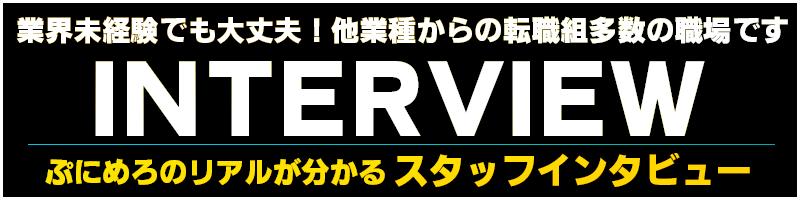 5年前、ぷにめろの前身となる店から働いております。前職は製造業でした。退屈だったので辞めました笑。
